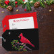 Niedlicher Kardinal und Stern auf schwarz und rot Weihnachtsgeschenk Tag Text auf der Rückseite bereit, um personalisiert zu sein.