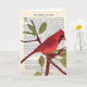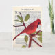 Ein amerikanischer Rotvogel, auch als Kardinal bekannt, ist sowohl vorne als auch innen von meiner Grußkarte verlassen. Die Karte ist innen leer. Passen Sie Ihren eigenen Text an.