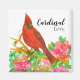 Ein Magnet "Kardinal Liebe", der mit einem Kardinal in einem blühenden rosa Rhododendron mit Blütenstaub illustriert mit Tinte und Aquarell dekoriert ist. Inspiriert von der Staat Vogel und Staat Blume von West Virginia. Sie können den Text nach Ihren Wünschen bearbeiten oder entfernen.