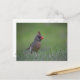 Auf dieser Postkarte befindet sich eine Kardinal im glänzenden Gras, die nach ihrem Partner sucht.