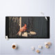 Eine Schreibtischmatte mit einem Foto eines Kardinals.