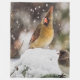 Ein schöner Kardinal und Spatz, der den Winterschnee genießt.