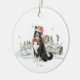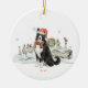 Celebrate the bold spirit of the Karelian Bear Dog with this charming illustrated holiday design. A striking black and white Karelian Bear Dog sits proudly in a peaceful winter woodland scene, wearing a festive Santa hat and plaid bow in a soft storybook watercolor style.