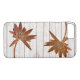 iPhone Gehäuse, kaum da, mit einem Design aus goldenem Wasser Lilien auf einem hellen Imitat aus Holz Hintergrund. Dank Design Cuts für den Hintergrund auf dem Fall.