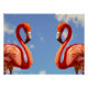 Idenische karibische Flamingos lateinischer Name Phoenicopterus ruber gegenüberstehend mit blauem Himmelshintergrund