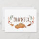 Erntedank Grußkarte mit dem Wort "Dankbar" in niedlich orange kariert mit Herbstlauben und Kürbissen. Fügen Sie Ihre eigene Nachricht auf die Rückseite.