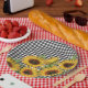 Schwarz-Weiß-Büffel kariert mit gelber Paperplatte aus Sonnenblumen. Eine tolle Ergänzung zu einem Sommer Party, Grillen Dusche und mehr.