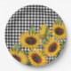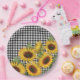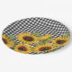 Karierte gelbe Sonnenblumen in Schwarz-Weiß-Buffal Pappteller