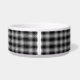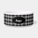 Stilvolles Hundefutter mit dem karierten Muster des schwarz-weißen Clans MacPhee, um das Gericht herum, und ein ovaler schwarzer Textbereich, in der Mitte, für den Namen Ihres Haustieres. Der weiße Text erlaubt es Ihnen, sich mit dem Namen Ihres Haustieres anzupassen, für eine personalisierte Schüssel, auf die Ihr Hundefreund stolz sein kann.