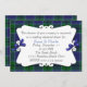 Elegante, maßgeschneiderte karierte Hochzeit-Probe Dinner Einladung. Ein dekorativer weißer Textbereich liegt über dem karierten Hintergrund des schottischen und blauen Clans. Die beiden Seiten des Textbereichs sind mit hübschen kleinen blauen Bögen geschmückt. Personalisieren Sie den Text so, dass er Ihren Bedürfnissen des Party entspricht.