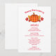 Erntedank Dinner Menü mit kariertem Kürbis und Eichenzweigen. Sie können die Speisekarte ganz einfach mit Ihren Erntedank Dinners Geschirr personalisieren.