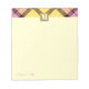 Kariertes Tartan Leather Custom Script Monogram Cream Notepad Modernes, modernes und modisches individualisierbares Notizblock mit "personalisierten Monogramm" auf goldenem Leder Abzeichen, rosa / gelbes kariertes Tartan oben und "personalisierte Namensnotizen" unten auf cremefarbenem Hintergrund. Dieses schöne Notizblock kann als wunderbares Geschenk durch Hinzufügen von Namen oder Text / Änderung von Schriftart, Farbe, Größe und Position.