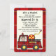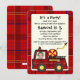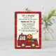 Roter Karierter Feuerzug und Platz für das Foto Ihres Kindes im Fahrersitz. Passen Sie Text und Foto für das nächste Party Ihres Kindes an.