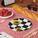 Karierter u. Sonnenblume-Schwarzweiss-Druck Pappteller