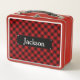 Kariertes Monogramm aus Rot und Schwarz Metall Brotdose