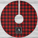 Kariertes Monogramm aus rotem und schwarzem Buffal Polyester Weihnachtsbaumdecke