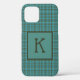 Ein blau-grün braun und schwarz kariert iPhone Gehäuse, dass mit Monogramm sein kann, um es zu Ihrem eigenen zu machen.