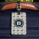 Kariertes Monogramm des Vintagen grauen Gepäckanhänger