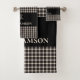 Kariertes Monogramm Hirsch | Schwarzes Creme Weiß Badhandtuch Set