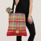 Diese karierte Tragetasche wird eine der beliebtesten Tragetaschen. Erstellt in farbenfrohen karierten Mustern von Primärfarben und rotem Kontrast. Personalisieren Sie einfach den Text des Monogramms im einfachen Zazzle-Editor. Ihre Wahl von zwei Stilen und Größen.