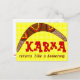 Die Aussage "Karma kehrt wie ein Bumerang zurück" mit einem Bild eines Bumerangs mit der Dekoration im Stil der Aborigine