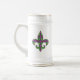 Ein harlequin-Muster von grün und lila verwandelt sich in eine spielerische Raute mit einem Overlay aus goldenen Diamantdächern und Lilie und schafft so ein lustiges und farbenfrohes Muster, das perfekt für alle New Orleans beeinflussten Mardi Gras Feste geeignet ist. Das Muster wird hinter der Silhouette einer Lilie maskiert, um eine lustige letzte Note hinzuzufügen. Diese Tasse ist in verschiedenen Farben, Größen und Stilen erhältlich, einschließlich Standard- und Reisebügeln.