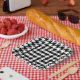 Karo aus schwarzem und weißem Hahnentrittmuster Pappteller