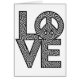Schreiben Sie Entwurf der LIEBE mit einem Friedenssymbol, das mit einem optischen Karomuster gefüllt wird.