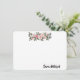 Diese flache Stationery Note Card wird in Weiß mit einem schönen rosa Blumendruck gezeigt. Passen Sie diese Karte an, und ändern Sie den Beispielnamen mit dieser Vorlage in Ihren Namen.