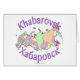 Schöne Hand-übertragene bunte Karte der Russischen Föderation mit dem Chabarowsk-Stadtstandort markiert mit einer Flagge. Stadtname auch auf russisch, Хабаровск. Einzigartiges Russland-Adoptionsgeschenk für Familien mit Kindern von Chabarowsk. Entworfen durch Hendrika von www.RedThreadMaps.com