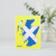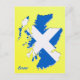 Postkarte einer schottischen Landkarte, die mit den Farben der schottischen St. Andrew's Salreifen-Flagge vor der SNP-farbenen Kulisse gemischt ist