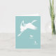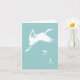 Fliege. Grafische Darstellungen in weiß auf hellblauem Hintergrund, von einem großen Vogel im Flug und zwei kleineren Vogelbildern im flachen Wasser. Im Inneren ist der Text "Vermisst Sie ... Da Sie weggeflogen sind" - kann personalisiert sein.