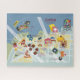 Eine in einer Reihe von Karten von New York City. Dieses konzentriert sich auf das historische Stadtviertel Dumbo in Brooklyn. Diese illustrierte Karte zeigt einige beliebte Sehenswürdigkeiten und zeigt Abbildungen eines Karussell, Pizzaslices, Schokoladenstücke, Gebäck, Flohmarkt, Eis-Kegel, Plattenspieler, Kamera, Wassertaxi und andere Ikonen.