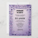 Poker zum Thema Geburtstagsfeier Einladung. Eine lila Einladung mit Spielkarten, die rund um die Grenze platziert sind.
