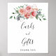 "Karten und Geschenke" elegantes blumengeschmücktes Hochzeitszeichen. Mit handgeschriebenen Stil Kalligraphie Schriftart und Aquarell Rose Blumenarrangements.