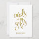 Ein elegantes Hochzeitszeichen, das den Text "Karten und Geschenke" in einem extrovertierten Script-Schriftart enthält, die Glitzer-Textur fügt eine festliche und glamouröse Touch hinzu. Die Hintergrundfarbe kann nach Ihren Wünschen und Vorlieben personalisiert werden, bitte kontaktieren Sie mich, wenn Sie eine spezielle Anfrage haben.
