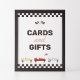 Lass deinen Party-Gästen wissen, wo man Karten und Geschenke verlasse (oder den Text anpassen) mit diesem Rennwagen-Designzeichen, entworfen, um unsere Racecar Party Collection.
