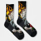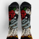 Original Vektorkunst einer Hand, die Karten hält, die in Brand sind. Mit Goldmünzen, Würfeln, 8 Ball, Ribbon und einer Rose.
