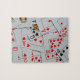 In einem farbenfrohen Muster präsentiert sich ein Stapel verstreuter Spielkarten.