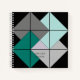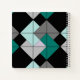 Personalisieren Sie dieses gemusterte Mini-Stall-Notebook mit einem Namen oder einem anderen Text und wählen Sie Papierstile, einschließlich leerer Skizzen oder Graphen-Papier. Traditionelles, einfaches Quiltblock "Card Trick"-Muster, das in einer modernen neutralen Farbpalette aus aquamariner Blues und Grautönen auf Schwarz erstellt wurde. Schönes Geschenk für Quilter oder andere Kreative.