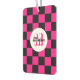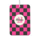 Checkered Quadrate heißen rosa schwarzen Retro Monogram Auto Lufterfrischer. Kegelförmige Quadrate geometrisches Retromuster Innenwagenzubehör - Geschenk für sie. Cooles geometrisches rechteckiges Muster in Retro. Vintage Fliesen schwarz rosa modernes Schachbrett. Personalisieren Sie Ihre individuelle Eingabe und Ihren eigenen Namen.