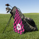 Kartierte Quadrate heißen rosa schwarz Retro Monogram Golf Handtuch. Personalisieren Sie Golf Accessoires mit Ihrem eigenen Initial und Namen. Cooles Retro-Schwarz-Rosa Schachbrett geometrisches quadratisches Muster entworfen Geschenk für Golfspieler.