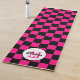Checked Quadrate heißen rosa schwarzen Retro Monogram Yoga Mat. Personalisieren Sie Ihre individuelle Eingabe und Ihren eigenen Namen. Cooles, hintergrundgezogenes geometrisches Quadratmuster. Vintage Fliesen schwarz und heiß rosa modernes Schachbrett.