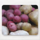 Dieses mousepad Fotografie der feinen Kunst kennzeichnet die Lose bunte Bio Kartoffeln, gerade geerntet und essfertig, in den Farben von Rotem, von Lila, von rosa, von Gelbem, von Braunem und Weiß. Jede Kartoffel hat seine eigene einzigartige Form.