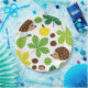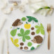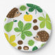 Niedliches, farbenfrohes, nahtloses Muster mit Kastanien, Kastanienholz, Äpfeln, Birnen und Igeln.