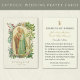 Mit einem wunderschönen katholischen Bild des Betrothals von Maria und Joseph mit einer dekorativen goldenen Grenze, die mit verschiedenen Blume und einem weißen Spitzen-Hintergrund betont wird. Ein Gebet steht auf der Rückseite für Braut und Bräutigam. Alle Texte und Schriftart können geändert werden.