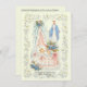 Mit einem katholischen, religiösen Vintage-Bild eines Babys in einer Bassinette mit der gesegneten Jungfrau Maria, die oben überragt. Diese Babyankündigungskarte beinhaltet auch die Verse der Schrift auf beiden Seiten. Alle Texte und Schriftart sind leicht zu modifizieren.
