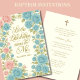 Mit einer wunderschönen, nach Maß entworfenen Taufe-Weihnachtseinladung mit rosa und blauen Blumen und einem schönen Goldschrift-Vers. Alle Texte und Schriftart können geändert werden.