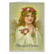 Reizende Weihnachtskarte mit einem Vintagen Mädchenengel, der einen heiligen Rosenbeet- und Rosenblumenstrauß hält. Aller Text und Schriftart können geändert werden.