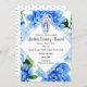 Die Dusche die Damen-Gesellschaftseinladung Rosenshoppes der blauen hebt Ihr spezielles Ereignis mit auffallenden blauen Dahlie-Blumen hervor. Das schöne ovale Bild der Jungfrau Mary, unsere Dame von Anmut holt Aufmerksamkeit zur Hingabe, die wir für unsere Mutter im Himmel haben, Mary. Ein Blau punktierter Schweizer, den Entwurf die Rückseite von Ihrem schmückt, laden ein. Zu mehr Besuch www.zazzle.com/showerofroses sehen
